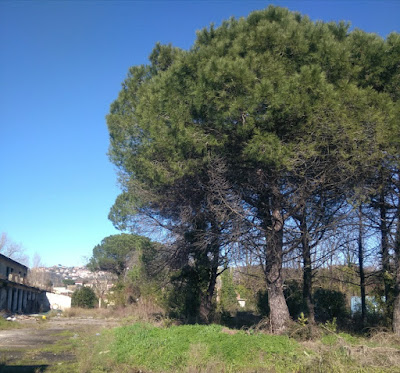 pini e arbusti proliferano. Le costruzioni sono fatiscenti e portano i segni di